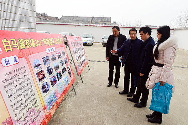 1月19日,由集團(tuán)公司人力資源部、社會(huì)事業(yè)部、資產(chǎn)經(jīng)營(yíng)部、審計(jì)監(jiān)察部組成的聯(lián)合考核組一行到白馬湖農(nóng)場(chǎng)對(duì)2017年度重點(diǎn)工作完成情況及所取得主要成績(jī)等進(jìn)行綜合考核,農(nóng)場(chǎng)領(lǐng)導(dǎo)姚春華、韓躍武及相關(guān)部門負(fù)責(zé)人陪同考核并匯報(bào)情況。