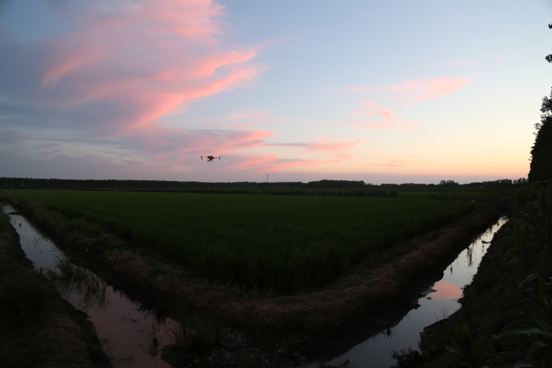 眼下正是水稻產量形成的關鍵時期,也是病蟲害高發時期。連日來,崗埠分公司組織農業科、生產區農技人員和大隊管理員,著眼紋枯病、稻曲病、稻縱卷葉螟、稻飛虱等高發病蟲害,深入田間展開排查統計,分類施策,科學開展肥水管理和綠色防控,抓好4.5萬畝水稻的穗期管理工作。“無人機夜間對水稻進行病蟲害綜合防治作業,避開白天高溫作業風險,大大提升作業效率,一臺無人機每小時可噴灑150畝,有力加速防治進程。”崗埠分公司農業中心負責人表示,無人機飛防不僅作業效率快,防治效果好,減少農藥使用量,降低農業生產成本,且能大大降低勞動強度,一舉多得。當前正是穗期水稻病蟲害綜合防治關鍵節點,分公司共組織無人機40余臺,采取夜間操作,確保在規定防治時間內完成防治任務,為秋糧豐收打好基礎。