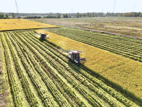 近日,在江蘇省連云港市海州區(qū)江蘇農(nóng)墾崗埠農(nóng)場(chǎng)的高標(biāo)準(zhǔn)農(nóng)田里,職工們利用晴好天氣,積極開(kāi)展水稻搶收工作,確保不誤農(nóng)時(shí)、顆粒歸倉(cāng)。 徐衛(wèi) 攝