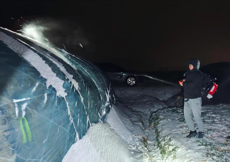 淮海農場則構建起“生產防護+民生保障”的全方位防御體系,第一時間傳達學習省農業農村廳緊急通知精神,牢固樹立“人民至上、生命至上”理念。在生產端,蘇墾農發淮海分公司重點強化麥苗分類管護,對晚播弱苗和旺長苗采取鎮壓保墑、合理施肥等措施。農場則在羊肚菌基地加固大棚并做好積雪清理準備,畜禽養殖區全面排查水電線路、配備備用發電機,通過優化飼料營養保障畜禽安全越冬。在民生端,同步推進基礎設施防凍,對綠化樹木噴施防凍液、對裸露供水管網進行保溫包裹,特別關注孤寡老人、困難職工等群體,安排專人上門檢查取暖設備、儲備生活用水。目前,農場已落實24小時值班制度,成立應急小隊并儲備充足物資,確保一旦發生險情能夠快速處置。