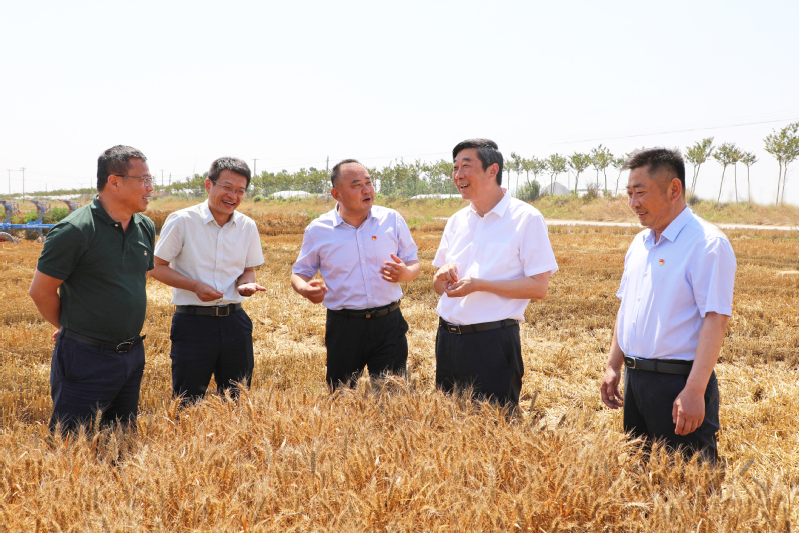 6月12日下午,集團(tuán)公司黨委書記、董事長魏紅軍到東辛調(diào)研。他強(qiáng)調(diào),要深入扎實(shí)開展學(xué)習(xí)貫徹習(xí)近平新時代中國特色社會主義思想主題教育,把“學(xué)思想、強(qiáng)黨性、重實(shí)踐、建新功”總要求貫穿始終,堅(jiān)持問題導(dǎo)向,深化調(diào)查研究,持續(xù)提高發(fā)現(xiàn)問題、研究問題、解決問題的能力,以實(shí)實(shí)在在的工作業(yè)績檢驗(yàn)主題教育成果。魏紅軍針對東辛漁光互補(bǔ)項(xiàng)目前期規(guī)劃中可能存在的問題,前往灌云洋橋漁光一體光伏發(fā)電項(xiàng)目現(xiàn)場考察,詳細(xì)了解相關(guān)經(jīng)驗(yàn)做法。隨后在東辛小麥制種大縣項(xiàng)目現(xiàn)場聽取“三夏”工作情況介紹,并對東辛“三夏”工作取得階段性勝利表示肯定。魏紅軍強(qiáng)調(diào),要堅(jiān)決抓好糧食安全這件頭等大事,決不能有任何松勁歇腳的思想,牢牢把握主動權(quán),確保“三夏”取得全勝。要大力實(shí)施集團(tuán)公司強(qiáng)核戰(zhàn)略和種業(yè)振興行動,將小麥制種大縣項(xiàng)目打造成東辛的一張名片。邁上新征程,東辛要聚焦影響高質(zhì)量發(fā)展突出問題,進(jìn)一步樹立“謀大事、干大事、成大事”的鮮明導(dǎo)向,抓好產(chǎn)業(yè)發(fā)展,強(qiáng)化內(nèi)部管理,提升經(jīng)營效益,不斷增強(qiáng)核心競爭力,在事關(guān)全局、事關(guān)發(fā)展、事關(guān)長遠(yuǎn)的研究謀劃、難題破解上取得新進(jìn)展新成效,奮力在墾區(qū)高質(zhì)量發(fā)展和現(xiàn)代化建設(shè)中繼續(xù)當(dāng)好排頭兵,為打造現(xiàn)代農(nóng)業(yè)航母“江蘇