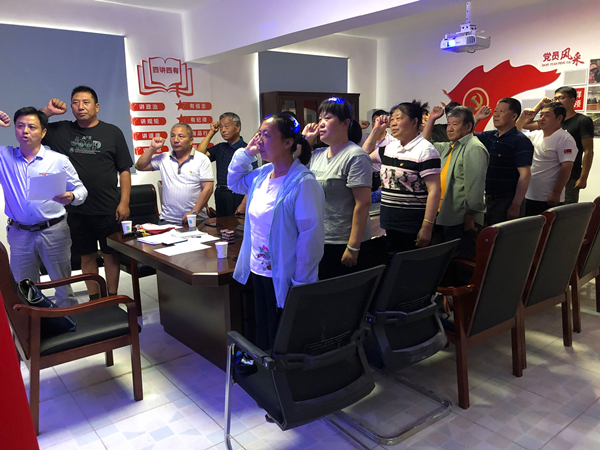 活動中,全體黨員面向黨旗緊握拳頭重溫入黨誓詞,支部書記向大家贈送“政治生日”賀卡,同時,為每位同志佩戴上了黨徽,并一一送上了生日寄語、合影留念。隨后,黨員代表分享入黨初心,依次作了交流發言。退休黨員吳玉清回顧了自己的成長歷程和奮斗經歷,表達了對黨的由衷感恩之情;賈緒會同志分享了自己入黨50年感悟,回想起50年前站在黨旗下莊嚴宣誓的自己,至今仍歷歷在目,回望來時路,心中充滿了感動和溫暖,非常感謝黨組織這些年的關懷和培養。