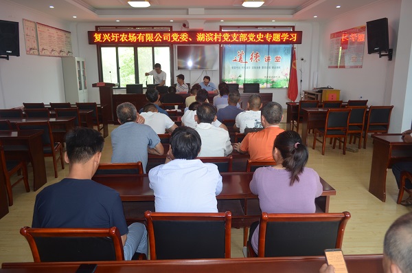 金湖縣銀涂鎮湖濱村是復興圩農場黨建工作企地共建單位,自黨史學習教育開展以來,雙方進一步加強學習交流,先后赴浙江安吉、嘉興、常熟開展了“學黨史踐初心 開新局譜新篇”紅色實境教育。6月27日下午,在湖濱村黨支部活動室開展了企地共享學黨史活動,邀請了銀涂鎮人武部部長黃冬作了專題黨課。黃部長從完成新民主主義革命,建立中華人民共和國開始說起,深刻闡述了黨堅定地捍衛國家民族利益,真誠地解決人民、特別是農民的民生問題,努力實現人民的民主權利,黨、政府和軍隊的高度廉潔;從完成社會主義革命,確立社會主義基本制度說起,闡述了中國共產黨在政治上、經濟上、外交上、國防上取得的偉大成就;從進行改革開放新的偉大革命,極大解放和發展社會生產力說起,闡述了經濟快速發展、民主法治建設取得的進步、文化影響力顯著擴大,人民生活水平大幅度提高、國家統一大業穩步推進、國防實力得到很大提升說起,總結了黨為中華民族作出的偉大貢獻。