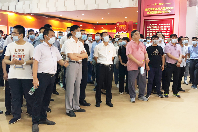 全體參觀人員追隨中國共產黨江蘇歷史的腳步,先后參觀了“建立黨的組織、為新民主主義革命勝利作出重要貢獻”“在探索中前進、進行社會主義革命和建設”“實行改革開放、推進中國特色社會主義江蘇實踐”“決勝全面小康、交出‘強富美高’新江蘇建設的時代答卷”等4個板塊。整個展覽以中國人民“站起來、富起來、強起來”為歷史脈絡,跨度時間長達百年,融圖片圖表、檔案文獻、文物實物、場景模型及新媒體手段在內的總展項3990多項,用“序廳、主體展區、尾廳”三部分,展示中國共產黨在江蘇的百年征程、巨大成就、寶貴經驗和偉大精神。